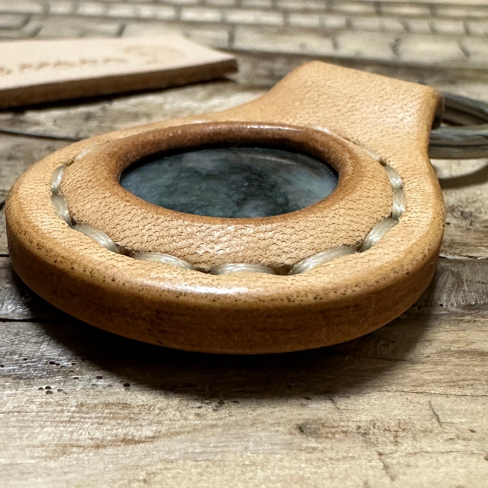 糸魚川翡翠を牛ヌメ革で包んだ