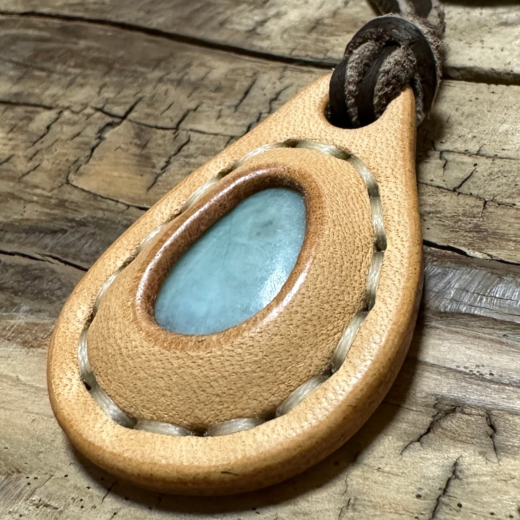 糸魚川翡翠を牛ヌメ革で包んだ